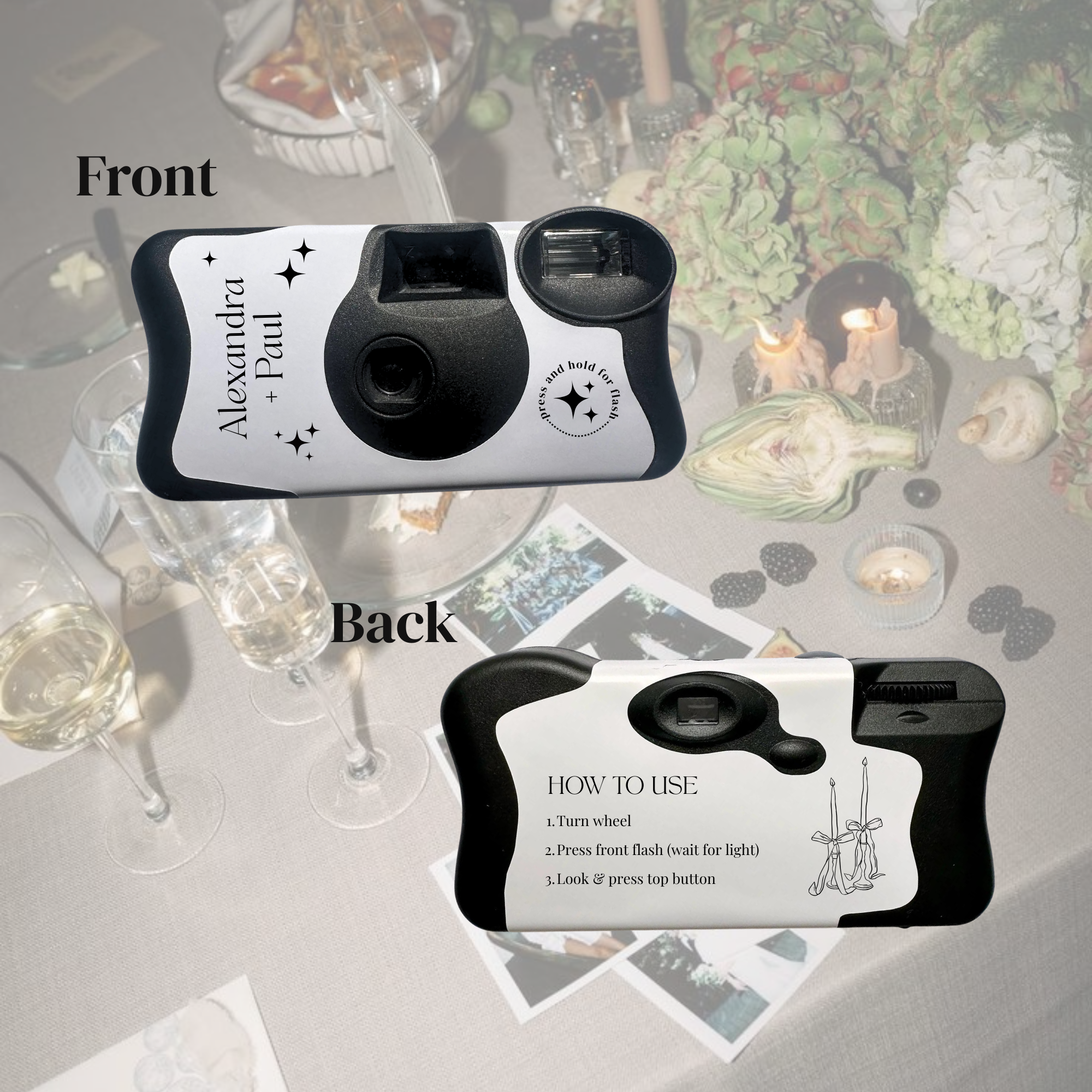 Place them around your event – Set them on guest tables, near the bar, or next to your guest book so friends and family can snap candid shots.